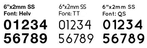 | Specification: Hairline. 2" ht x 2mm thick. Arial font |